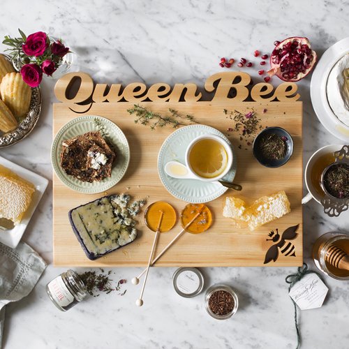 Разделочная доска Queen Bee - оригинальная кухонная доска с вырезанной маленькой пчелкой. Деревянную доску Queen Bee можно использовать в качестве разделочной доски, или же как сервировочную для подачи сыра. Размеры: высота 33 см, ширина 41 см, толщина 2 см.