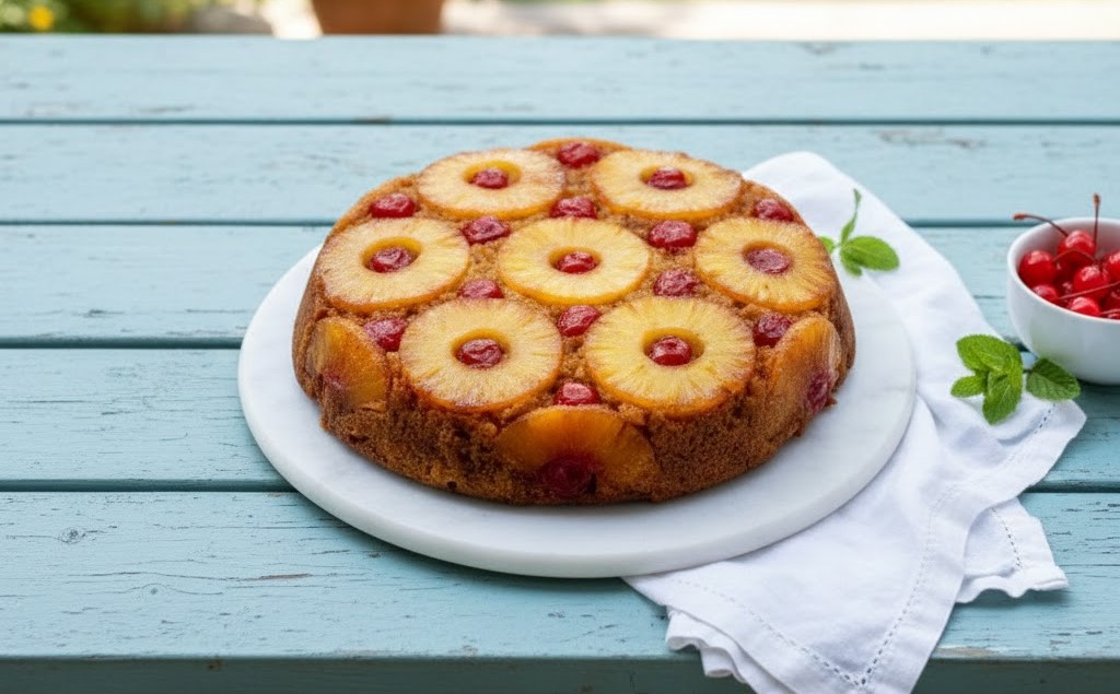Цей перевернутий пиріг із карамеллю та ананасами має французьке походження, але в серіалі він отримав власний характер. Нижче — покрокова інструкція, яка дозволить відтворити десерт у домашніх умовах.