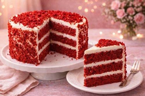 «Красный бархат» — знаменитый шоколадный торт красного оттенка. Впервые рецепт торта был опубликован в 1950-х годах в газете одного из американских штатов — Огайо.