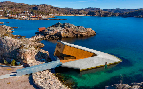 Один из самых необычных ресторанов в мире — подводный ресторан Under — расположен в коммуне Линдеснес на юге Норвегии. Его гости могут наблюдать за жизнью морского мира на глубине около пяти метров, наслаждаясь ужином буквально под водой.