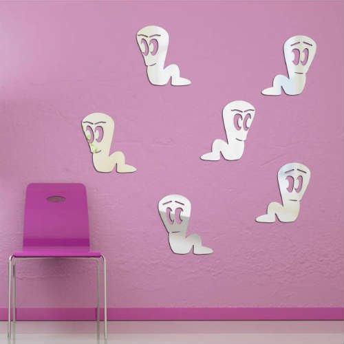 Декоративное зеркало Червячки - зеркальные наклейки на стены в виде забавных червячков. Размеры: 6 шт х 11 см. Материал: Органическое стекло (Акрил).