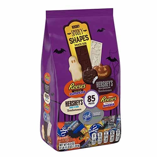 Набор фигурных конфет Hershey's Spooky Shapes состоит из конфет Reese's Peanut Butter Pumpkins - конфеты в виде тыквы с начинкой из арахисовой пасты, Reese's Peanut Butter Ghosts - конфеты в виде призраков в белом шоколаде с начинкой из арахисовой пасты, Hershey's Milk Chocolate Tombstones - молочный шоколад, York Pumpkin Shaped Dark Chocolate - конфеты в виде тыквы в темном шоколаде с мятной начинкой и Hershey's Cookies ‘N’ Crème Tombstones - белый шоколад с кусочками хрустящего шоколадного печенья.The Hershey Company — крупнейший производитель шоколадных батончиков в Северной Америке. Главной офис находится в городе Херши, штат Пенсильвания, который также является родиной Hershey’s. Hershey’s является одной из старейших шоколадных компаний в Соединенных Штатах.