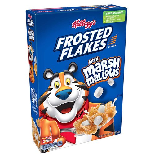 Сухой завтрак Kellogg's Frosted Flakes with Marshmallows - вкуснейшие кукурузные хлопья с маршмэллоу от американской компании Kellogg's . Вес: 385 гр. США.