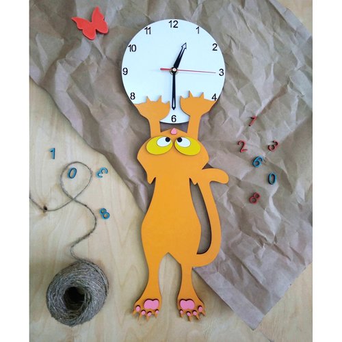 Настенные часы для детской комнаты Рыжий Кот - настенные часы из дерева для детской комнаты. Механизм: кварцевый с плавным ходом. Размеры: 54 см.