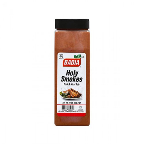 Приправа для мяса Badia Holy Smokes Pork & Meat Rub - ароматная смесь специй на основе перца чипотле, паприки, порошка какао, коричневого сахара, чеснока и других пряностей. Приправа для мяса Badia Holy Smokes Pork & Meat Rub идеально подойдет для говядины, свинины, птицы и рыбы. Вес: 680 гр. США.