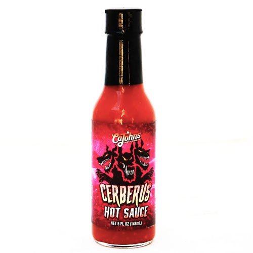 Острый соус Cajohns Cerberus Hot Sauce - острый соус на основе перцев 7-pot Primo, 7-pot Primo Dougla, Каролина Рипер с добавлением чеснока и специй. Острота соуса: больше 250,000 сковиллей. Обьем: 148 мл. США.