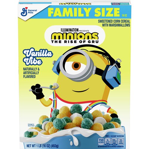 Сухой завтрак Minions Vanilla Vibe - вкуснейшие зерновые шарики со вкусом ванильного торта и с добавлением маршмэллоу. Вес: 453 гр. США.