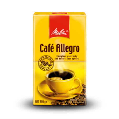 Кофе молотый Melitta Allegro - натуральный молотый кофе c тонким помолом зерна. Напиток имеет пряный ароматом с легким оттенком шоколада. Allegro превосходно подходит для завтрака или послеобеденного кофе. Заряжающий энергией, крепкий и бодрящий, данный кофе обладает ярким вкусом и щедрым ароматом. Тонкий помол этой смеси идеально подходит для турок, кофеварок и кофейных машин. Арабика - 90%, Робуста - 10%.